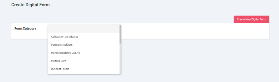 Navigate to the Menu item, Digital Form, it is at the bottom of the menu items, if you cannot see it please contact your administrator – you will need to be given access.