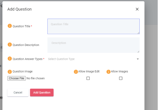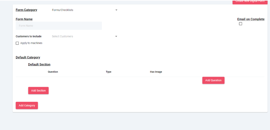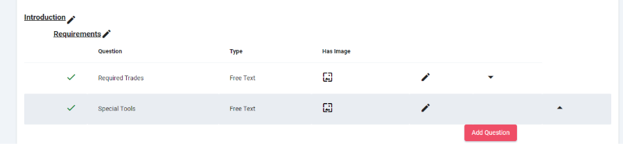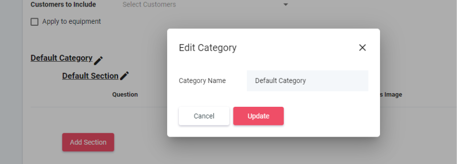 Then add the first section – again by clicking on the pencil – all questions need a category and section. Then start to add your questions as per below;