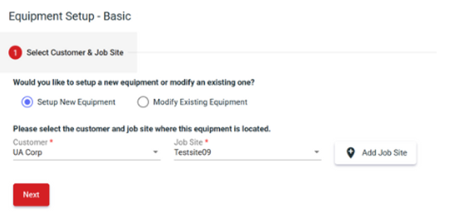 Use the filter criteria to search for the equipment you would like to set up equipment on
