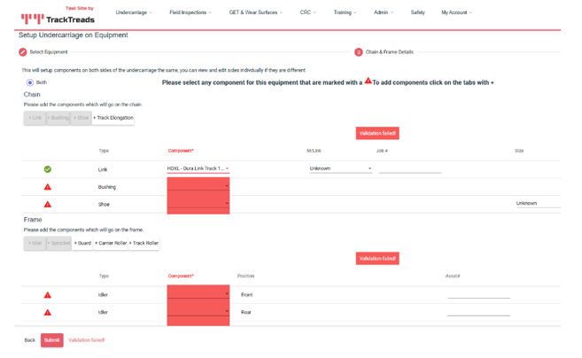 You will be redirected to the Setup Undercarriage on Equipment screen