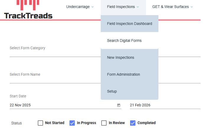 1) Navigate to Field Inspections then click on ‘Search Digital Forms ‘