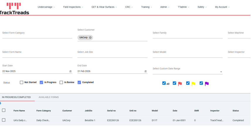 2) Use the search criteria to search for the form you are looking for. On the status bar ‘In Progress’ and ‘Completed’ is pre-selected so forms will appear under the In Progress/Completed tab
